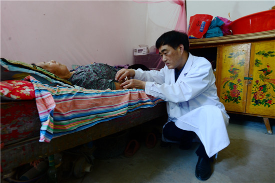 李樓鄉(xiāng)位張行政村72歲的貧困戶張振廷腦中風(fēng)多年,在大醫(yī)院治療一個(gè)月后,留有偏癱后遺癥臥床不起;李莊行政村80歲的貧困戶李體榮也是此癥,因無錢治療,二人均回家“等死”。柴萬(wàn)靈作為簽約家庭醫(yī)生,就在他們家中設(shè)立家庭病床,每周一、三、五到老張家,二、四、六到老李家,給他們采用中醫(yī)針灸、按摩,并為其煎服偏癱復(fù)原湯,兩位老人都是半年左右能拄拐下地。