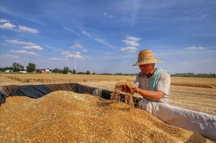 驕陽(yáng)似火,麥香四溢。6月的西華鄉(xiāng)村大地到處一片繁忙景象。一臺(tái)臺(tái)收割機(jī)在金黃色的麥浪中轟鳴著馳騁,隨著小麥?zhǔn)崭顧C(jī)駛過,一顆顆金燦燦的麥穗被“吃”進(jìn)收割機(jī),然后,一粒粒飽滿的麥子從出倉(cāng)口“吐”進(jìn)農(nóng)用車車斗里,農(nóng)民的臉上洋溢著豐收的喜悅。