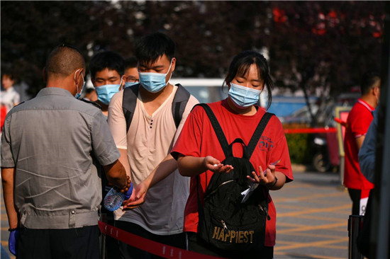 7月7日上午,2020年高考迎來(lái)開(kāi)考,周口市10萬(wàn)考生步入考場(chǎng)。圖為周口考點(diǎn)的考生入場(chǎng)。