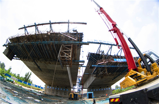 周口北環(huán)跨賈魯河大橋是我市在建重點工程,全長904米,其中主橋總長286米,共3跨,采用懸澆法施工。7月16日中午,記者在工地看到,經(jīng)過一年多的施工,工程完成80%左右,為了保障工期和質(zhì)量,工人們冒著酷暑,在跨河的兩列橋墩上,忙碌著澆鑄施工,隨著澆鑄橋體的延伸,預(yù)計年底橋體完成合攏。