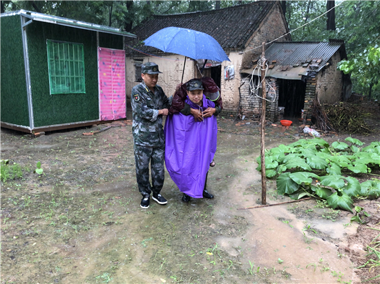強(qiáng)降雨導(dǎo)致部分地勢(shì)較低的農(nóng)房及農(nóng)田被淹,在排查中,發(fā)現(xiàn)鄭老莊村幾處農(nóng)房被水淹泡,隨時(shí)有倒塌的危險(xiǎn),了解這一情況后,該鎮(zhèn)第八工作區(qū)區(qū)長(zhǎng)、“中國(guó)好人”、優(yōu)秀退役軍人蔣昆立即組織鄭老莊村兩委人員及民兵應(yīng)急隊(duì),第一時(shí)間趕到現(xiàn)場(chǎng),轉(zhuǎn)移隱患點(diǎn)周圍住戶?!坝暝絹?lái)越大,你們這個(gè)屋今晚上不能住了,反正隨時(shí)都有倒塌的危險(xiǎn),把要緊的東西收拾一下,跟到我們走快點(diǎn)”蔣昆勸說(shuō)鄭老莊村受災(zāi)的一名老大爺。