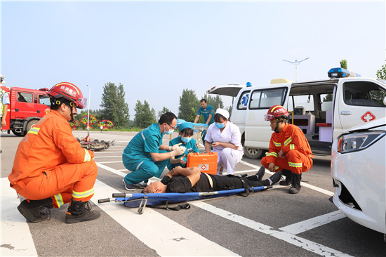 港區(qū)公安分局局長何學(xué)民到場觀摩演練,并在演練結(jié)束后進(jìn)行總結(jié)。何學(xué)民說:“通過這次演練,有效整合了轄區(qū)政府、公安、消防、醫(yī)療等各方面資源和力量,充分發(fā)揮‘四位一體’協(xié)作機(jī)制效能,進(jìn)一步提升了各部門的聯(lián)動效率,為快速處置重特大交通事故以及最大限度減少人員傷亡和財產(chǎn)損失打下了堅實基礎(chǔ)?!?/p>