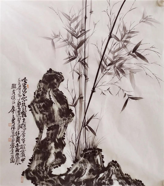 最近,懷章先生送我一幅新創(chuàng)作的竹石圖裝點陋室。送去琉璃廠裝裱做框,裱畫師傅看到這幅畫,眼睛一下就亮了:這個畫,真好!看落款就知道有功夫。
