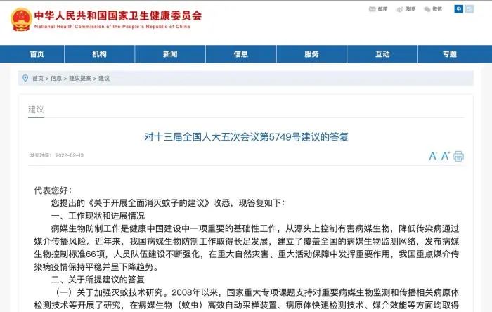 近日,一則全國人大代表提出全面消滅蚊子的建議得到了國家衛(wèi)健委的答復。很快,各種爭議也隨之而來。有人認為,蚊子是自然界和生態(tài)系統(tǒng)的一員,存在有其合理性;也有人認為,蚊子是害蟲,是疾病傳播的元兇之一,應該“除之而后快”。