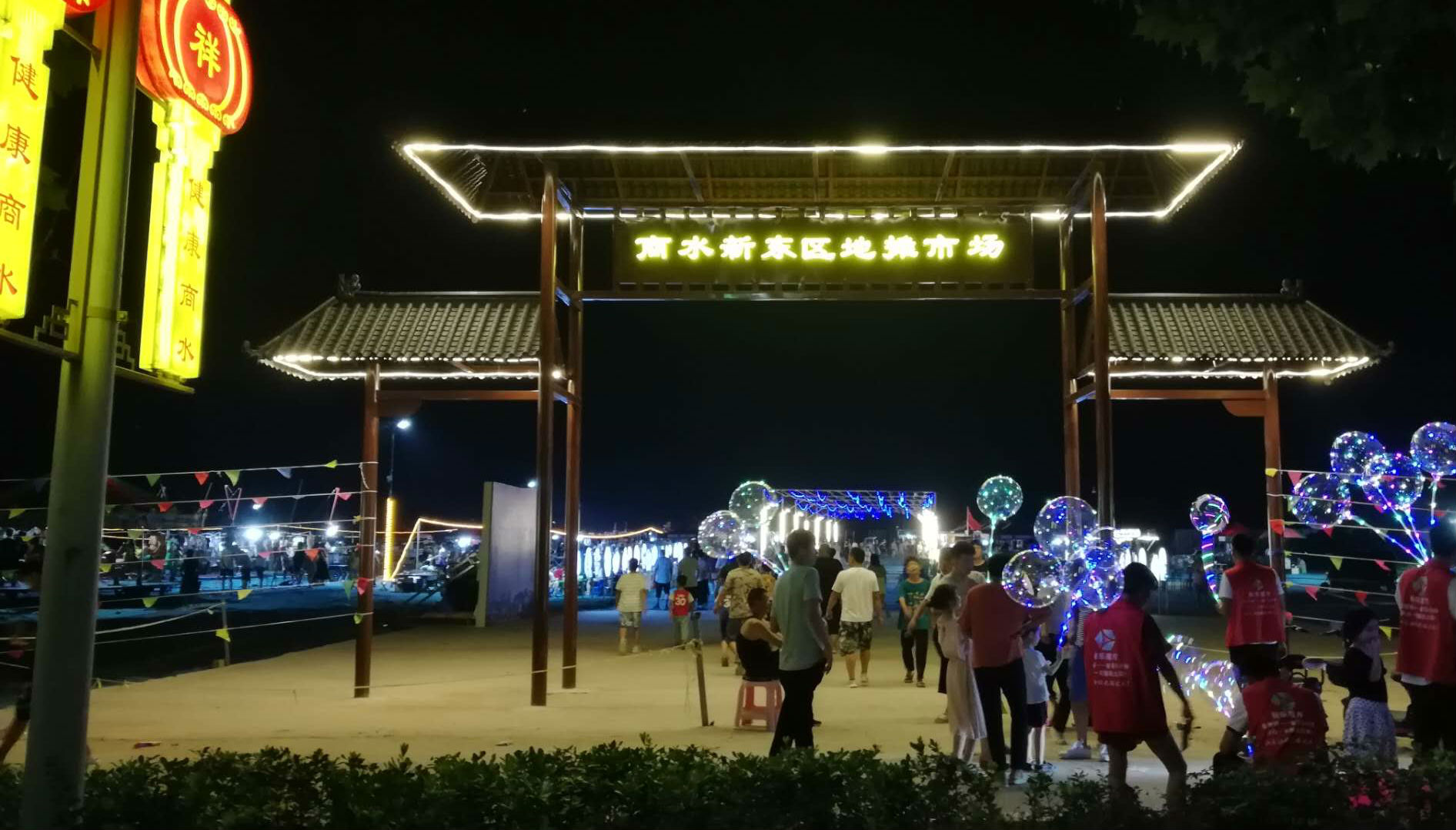 昨晚,市民在商水東新區(qū)地?cái)偸袌?chǎng)游玩購物。