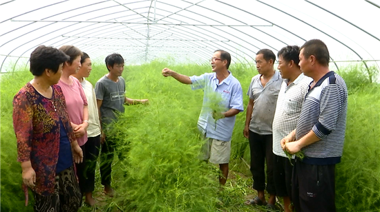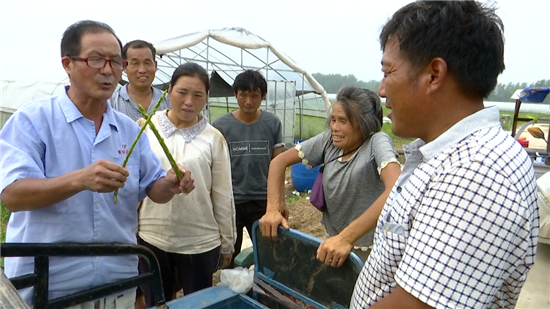 當(dāng)天,一場技術(shù)講座正在如期舉行,當(dāng)?shù)赜忻奶J筍種植“土專家”程殿明說:“咱這蘆筍種植,要以噴灑生物藥為主,在有機(jī)種植上,千萬不能用有機(jī)磷類的。大棚要想多掙錢,眼下管理是關(guān)鍵,長勢好了,進(jìn)入冬季,一個棚采摘就能掙三到五千塊錢。”