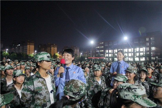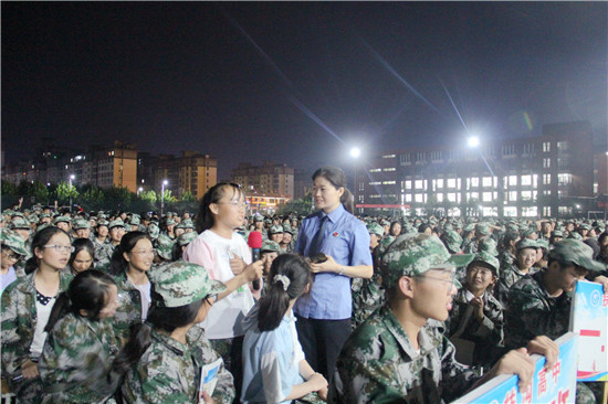 "你們正處于人生的花季,知識是養(yǎng)分,那么法律知識就好比是殺蟲劑,要學(xué)好,更要用好,要做到知法、守法、用法,在法治護(hù)航下遠(yuǎn)離校園欺凌,拒絕電信網(wǎng)絡(luò)詐騙,不義之財不可取,防范之心不可無……”。8月29日晚上7點,黃昏謝去,暮色已經(jīng)模糊起來了,伴著淺淺的晚霞,扶溝縣檢察院檢委會專職委員郁玉琴帶領(lǐng)該院“女檢察官特別護(hù)未隊”的三名女檢察官到扶溝高中為正在接受軍訓(xùn)的1600余名高一新生們上了一堂別開生面的法治課。
