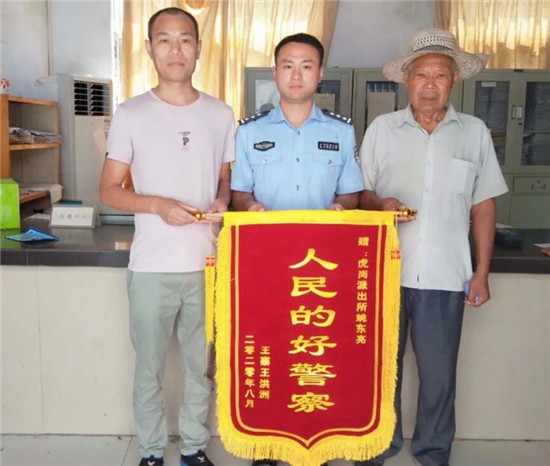“沒(méi)想到,真沒(méi)想到,我這輩子還能與兒子相見(jiàn),太感謝你了。”昨日,鄲城縣虎崗鄉(xiāng)派出所戶籍室門(mén)口鞭炮齊鳴,該鄉(xiāng)王寨行政村75歲的貧困戶王洪周和兒子王鐵練及親屬向戶籍民警姚東亮送上錦旗后,感激之情溢于言表。