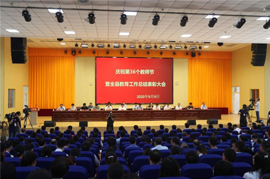 全縣各鄉(xiāng)鎮(zhèn)黨委書記和主抓教育副鄉(xiāng)鎮(zhèn)長,縣直各單位主要負(fù)責(zé)人,教體局班子成員及各股室負(fù)責(zé)人,各鄉(xiāng)鎮(zhèn)中心校校長、局直學(xué)校校長,中小學(xué)校長代表,優(yōu)秀教師代表、學(xué)生代表等1100人共同慶祝第36個(gè)教師節(jié)暨全縣教育工作總結(jié)表彰大會(huì)。