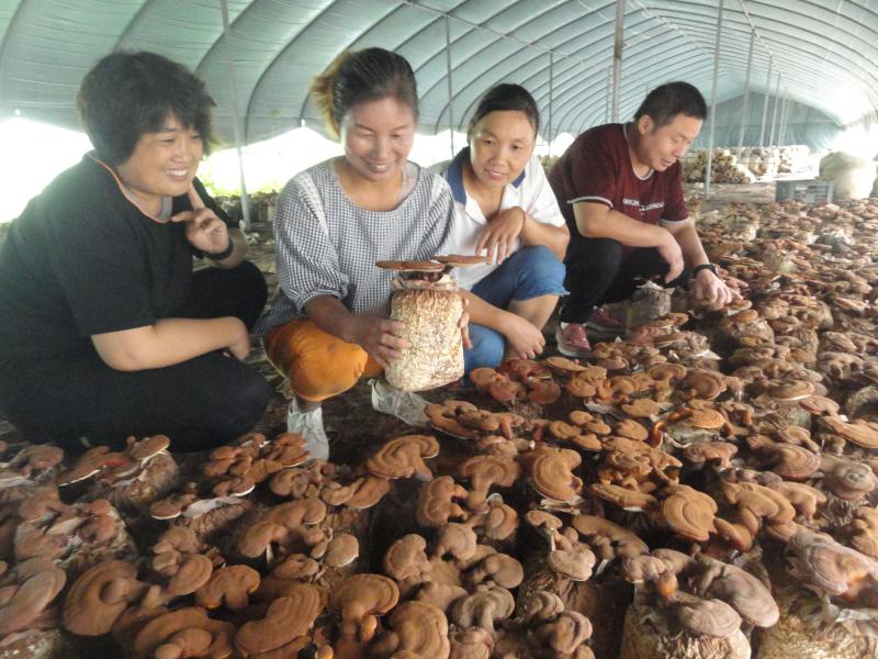 9月15日,商水縣黃寨鎮(zhèn)楊營村“蘑菇王”楊秀麗(左二),在扶貧產(chǎn)業(yè)園向種植戶傳授靈芝管理技術(shù)。近年來,黃寨鎮(zhèn)采用“合作社+基地+貧困戶”的模式,集種植、加工、銷售為一體,加快推進(jìn)食用菌全產(chǎn)業(yè)鏈開發(fā),帶動300多人實現(xiàn)脫貧致富。 喬連軍 攝
