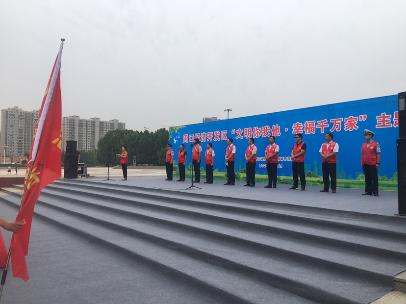 開發(fā)區(qū)動(dòng)員廣大群眾,心系創(chuàng)建從我做起,深入踐行社會(huì)主義核心價(jià)值觀。文明養(yǎng)成從我做起,知榮辱、講文明、重禮儀,恪守社會(huì)公德、職業(yè)道德、家庭美德、個(gè)人品德,踐行《周口市民文明公約》,遵守“十不”行為準(zhǔn)則。維護(hù)秩序從我做起,積極參與文明交通、文明餐桌等行動(dòng),遵守交規(guī),不在禁行區(qū)內(nèi)騎行或乘坐電(機(jī))動(dòng)三輪、四輪車,自覺維護(hù)公共秩序。保護(hù)環(huán)境從我做起,積極參與美化綠化亮化凈化環(huán)境活動(dòng),自覺參加愛國衛(wèi)生運(yùn)動(dòng),落實(shí)“門前三包”責(zé)任,自覺愛護(hù)公共設(shè)施和環(huán)境衛(wèi)生。誠實(shí)守信從我做起,牢固樹立誠信為本、操守為重的觀念,說文明話、辦文明事、做文明人,重信譽(yù)、守信用、講誠信,形成誠實(shí)守信的良好氛圍。志愿服務(wù)從我做起,大力弘揚(yáng)奉獻(xiàn)、友愛、互助、進(jìn)步的志愿服務(wù)精神,積極投身各種志愿服務(wù)活動(dòng),培育社會(huì)好風(fēng)尚。