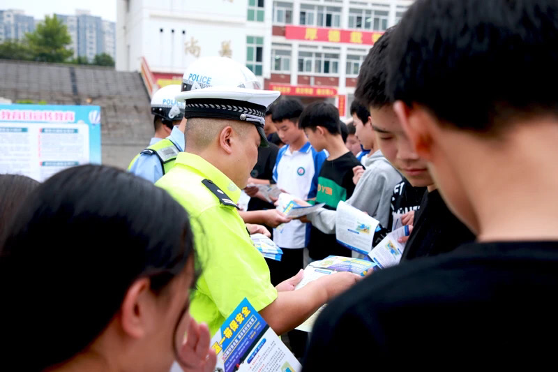 民警們還給師生發(fā)放了交通安全知識(shí)宣傳單,倡議同學(xué)們當(dāng)好道路交通安全知識(shí)“小宣傳員”“小監(jiān)督員”,監(jiān)督自己的家長(zhǎng)和身邊的小朋友規(guī)范交通行為,知安全風(fēng)險(xiǎn)、懂緊急避險(xiǎn),防患于未然,遠(yuǎn)離交通事故危害。