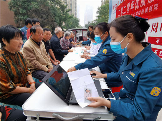 9月25日早上,周口市城鄉(xiāng)一體化示范區(qū)文昌社區(qū)衛(wèi)生服務(wù)中心的醫(yī)務(wù)人員在建業(yè)小區(qū)為居民測(cè)量血壓,并建立健康檔案。為滿足社區(qū)廣大群眾基本醫(yī)療衛(wèi)生服務(wù)需求,更貼心為轄區(qū)居民的服務(wù),文昌社區(qū)衛(wèi)生服務(wù)中心開(kāi)展2020年優(yōu)質(zhì)服務(wù)基層行活動(dòng),文昌社區(qū)衛(wèi)生服務(wù)中心組織醫(yī)務(wù)人員不定時(shí)走進(jìn)各個(gè)小區(qū),為居民進(jìn)行基礎(chǔ)項(xiàng)目體檢,并建立居民健康檔案。