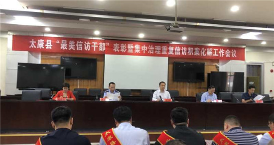 9月29日上午,太康縣在綜合樓一樓會(huì)議室召開(kāi)太康縣首屆“最美信訪干部”表彰大會(huì)暨集中治理重復(fù)信訪化解信訪積案專項(xiàng)工作會(huì)??h政府副縣長(zhǎng)李煒,縣公安局局長(zhǎng)李根闖,縣公安局政委喬建國(guó),縣委政法委常務(wù)副書(shū)記、縣信訪局黨組書(shū)記、局長(zhǎng)趙春麗及各鄉(xiāng)鎮(zhèn)、縣直各單位分管信訪副職和信訪專職參加會(huì)議。會(huì)議由縣政府黨組成員、縣政府辦公室主任程勇主持。