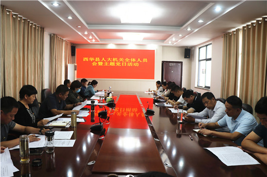9月29日,西華縣人大常委會機關召開全體人員會議,安排部署黨風廉政建設工作,開展“厲行節(jié)約黨員帶頭、反對浪費從我做起”主題黨日活動??h人大常委會主任周曉燕、副主任龐有敬出席會議。