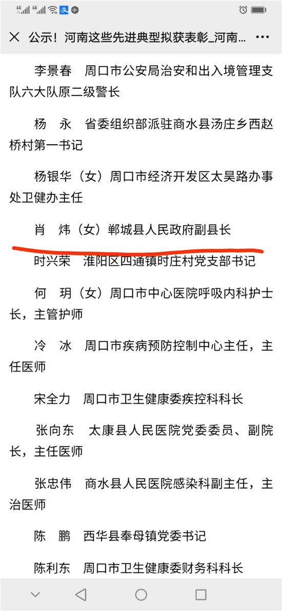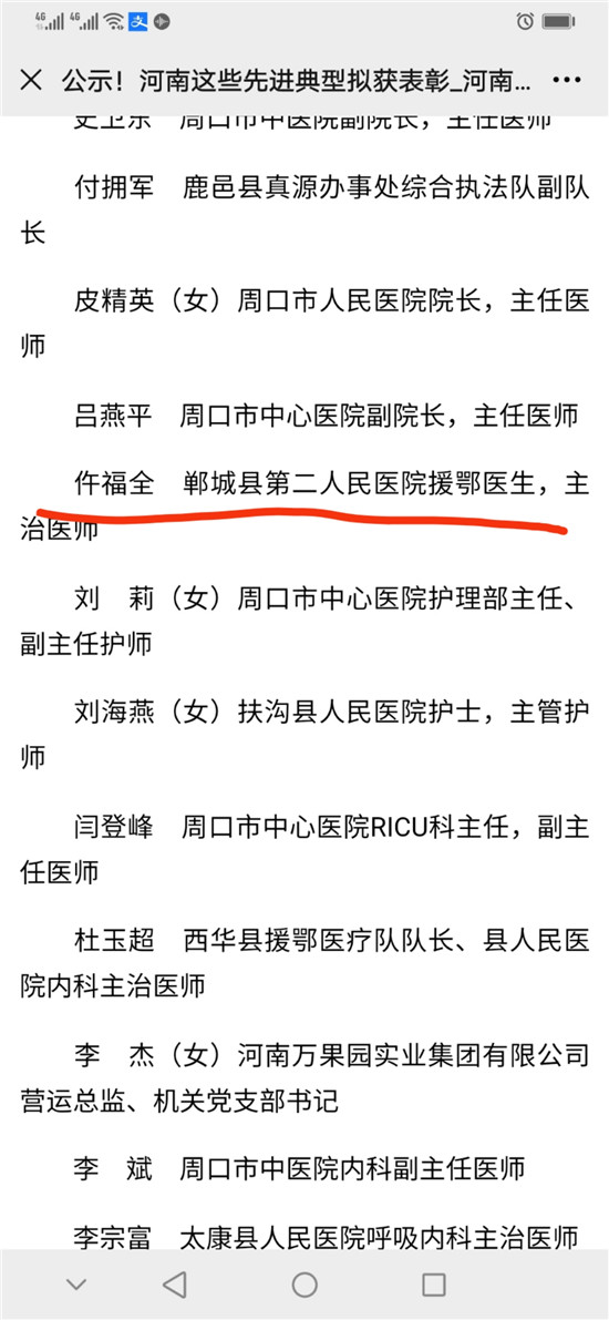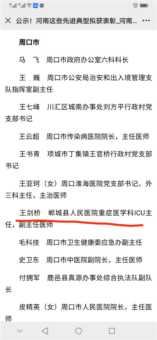 10月10日,河南省委、省政府表彰了一批抗擊新冠肺炎疫情先進(jìn)個(gè)人、河南省抗擊新冠肺炎疫情先進(jìn)集體、河南省優(yōu)秀共產(chǎn)黨員、河南省先進(jìn)基層黨組織。其中,鄲城縣副縣長肖煒,縣第二人民醫(yī)院援鄂醫(yī)生、主治醫(yī)師仵福全,縣人民醫(yī)院重癥醫(yī)學(xué)科ICU主任、副主任醫(yī)師王劍橋3位同志,被評(píng)為河南省抗擊新冠肺炎疫情先進(jìn)個(gè)人。