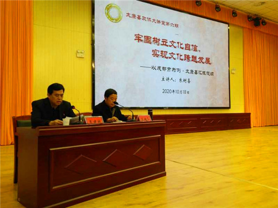 為弘揚優(yōu)秀傳統(tǒng)文化,全面提升政協(xié)委員的政治業(yè)務(wù)素質(zhì)和文化理論素養(yǎng),著力破解太康文化發(fā)展的認(rèn)識和機制難題,10月18日上午,太康縣政協(xié)組織舉辦“牢固樹立文化自信 實現(xiàn)文化跨越發(fā)展”專題講座。王建林、閆家明、張新棟、于闐鎮(zhèn)、鄧昌鋒等縣領(lǐng)導(dǎo),縣直單位和鄉(xiāng)鎮(zhèn)領(lǐng)導(dǎo)班子成員,縣政協(xié)全體委員,省、市駐太政協(xié)委員,政協(xié)機關(guān)全體工作人員,太康縣第一高級中學(xué)的師生代表聆聽講座。