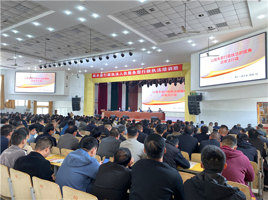 10月19日,商水縣召開行政執(zhí)法人員服務(wù)型執(zhí)法培訓(xùn)會??h委常委、政法委書記、縣政府黨組成員王勇,市司法局黨組成員、副局長鄭啟新,市司法局依法行政指導(dǎo)科科長楊玉芹出席培訓(xùn)會。縣司法局黨組書記、局長王洪輝主持會議。