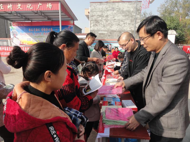 為紀(jì)念《反間諜法》頒布實(shí)施6周年,商水縣委政法委、縣委國(guó)安辦等單位聯(lián)合開展普法教育進(jìn)鄉(xiāng)村活動(dòng),通過(guò)發(fā)放宣傳資料、展示宣傳版面、現(xiàn)場(chǎng)講解等形式對(duì)群眾進(jìn)行國(guó)安教育和法治教育。圖為11月1日,工作人員在活動(dòng)現(xiàn)場(chǎng)向村民發(fā)放宣傳資料。