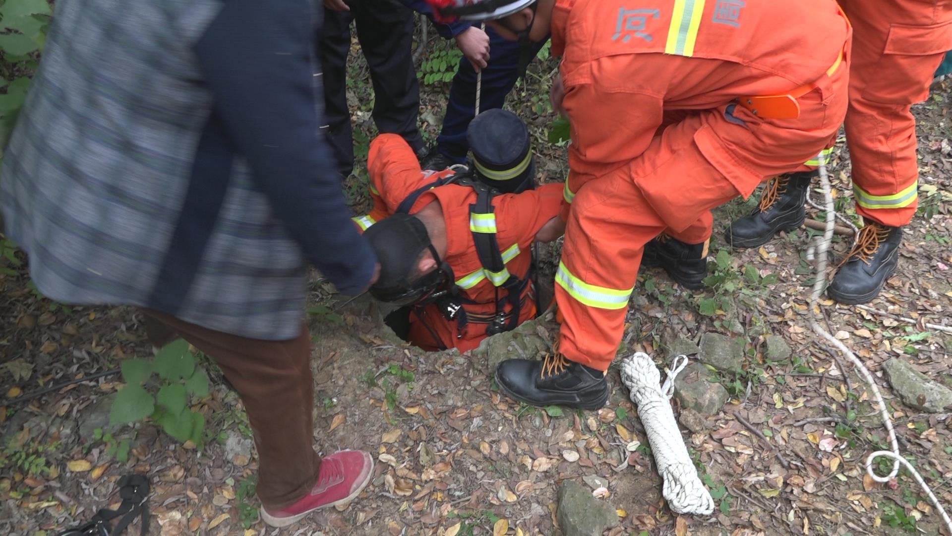 救援人員到達現(xiàn)場后發(fā)現(xiàn),一名蒼蒼的老人掉落電纜井內(nèi),井雖然不深,但是井下面積很大而且沒有著力點,給救援帶來一定的難度。此時,被困老人仍有意識,但無法行動。救援人員隨即背上空氣呼吸器,綁上安全繩下井營救,其余人員配合營救。下井救援時,救援人員攜帶綁有安全繩的消防安全帶下井試圖給老人戴上,可由于被困人員年齡較大,無法積極配合,救援人員通過不斷嘗試才將消防安全帶扣到被困人員腋下,井上配合人員抓緊安全繩上拉,經(jīng)過十分鐘救援作業(yè),老人被成功救出,等候在一旁的急救人員將其送往醫(yī)院救治。