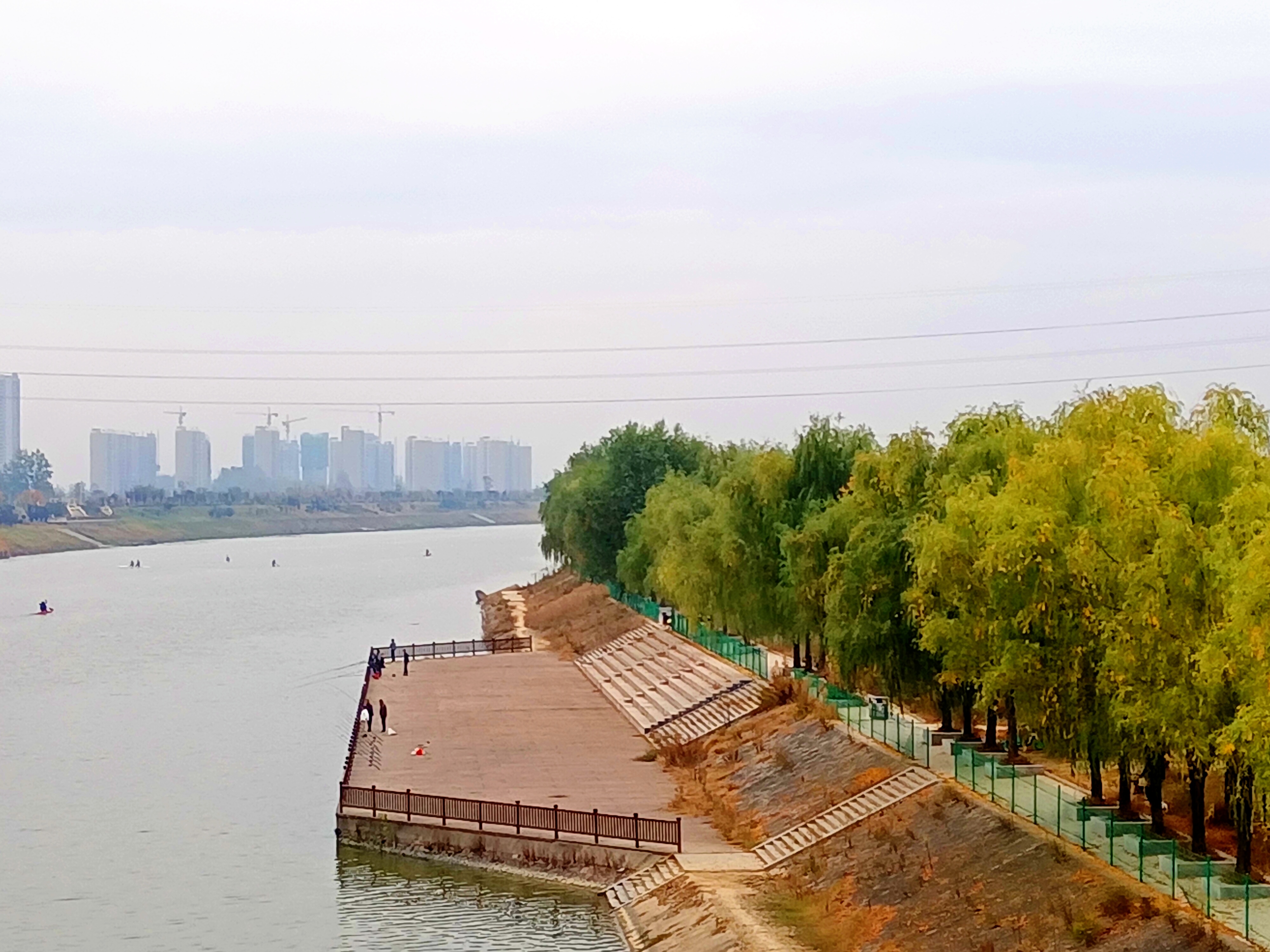 深秋時(shí)節(jié)天漸涼,滿目綠色稍染黃。沙潁河畔秋光美,游人垂釣劃舟忙。