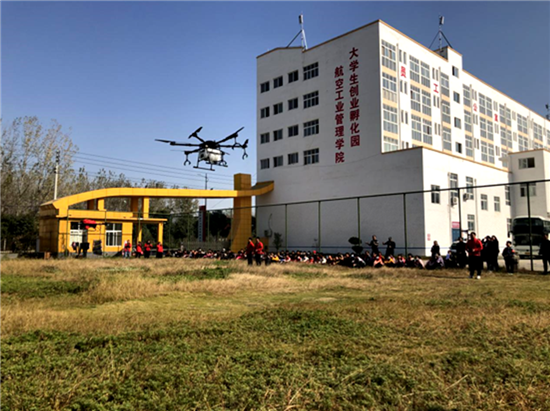 “快看,無人機(jī)飛起來了!”“哇,飛得這么高,還來去自如!”11月7日,伴隨一陣陣驚呼和贊嘆聲,幾架無人機(jī)緩緩升到空中,這是西華縣無人機(jī)產(chǎn)業(yè)園黨支部黨員飛手給小朋友們模擬農(nóng)田打藥的場景。