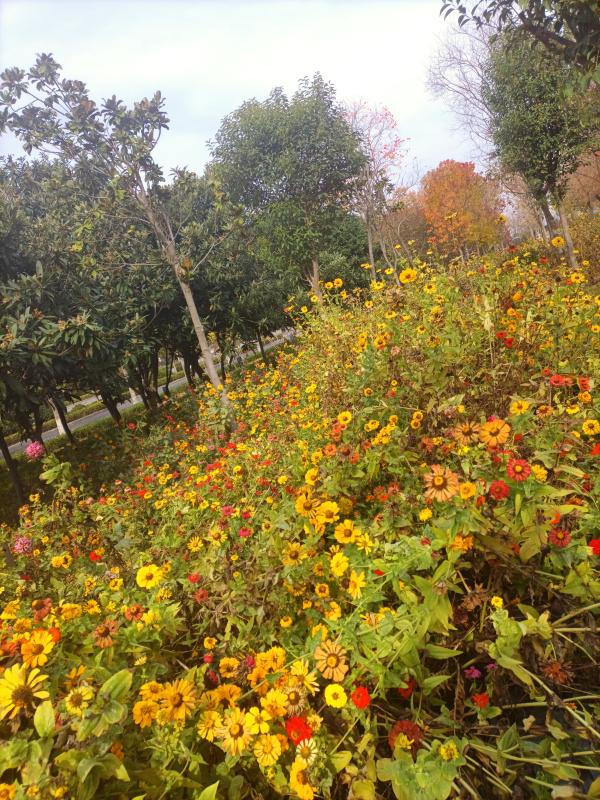 初冬時(shí)節(jié),雨后初晴,周口市區(qū)的一片小雛菊分外嬌艷,姹紫嫣紅的鮮花如同一片彩色的走廊,讓人不禁駐足欣賞。