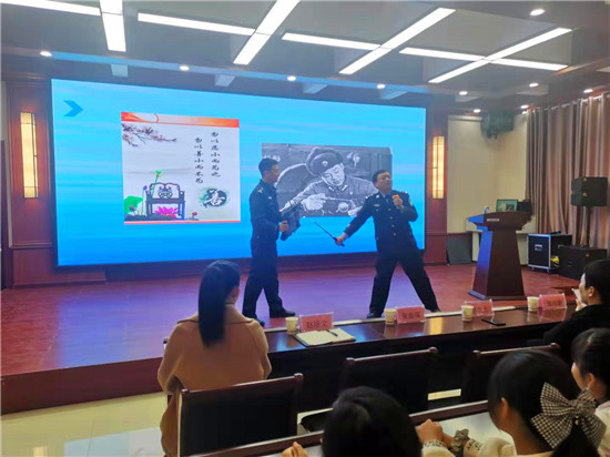 課堂上, 公安民警用鮮活的案例剖析青少年違法犯罪的心理軌跡,讓同學(xué)們做遵紀(jì)守法好學(xué)生。民警們解讀了社會(huì)主義核心價(jià)值觀基本內(nèi)涵和具體要求,教育同學(xué)們要愛(ài)黨愛(ài)國(guó)愛(ài)校園愛(ài)學(xué)習(xí),做人誠(chéng)信,做事友善。民警們還教會(huì)學(xué)生們?nèi)绾巫R(shí)別毒品,認(rèn)識(shí)毒品危害,做到拒絕、遠(yuǎn)離毒品,爭(zhēng)當(dāng)禁毒小小宣傳員。對(duì)如何防范被刀棍傷害,民警們演示了書包板凳防護(hù)法。③5