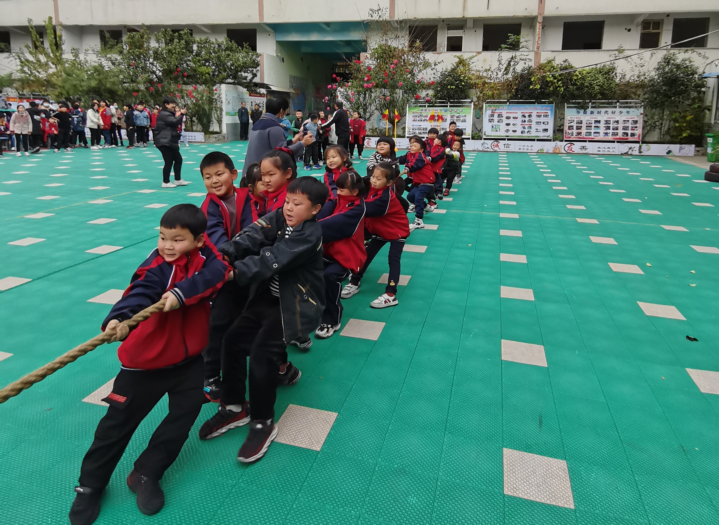“加油、加油”在此起彼伏的歡呼和加油聲中,拔河比賽開始啦!同學們在克服困難、順利完成比賽后體會到發(fā)自內(nèi)心的勝利感和自豪感,獲得人生難得的團隊體驗。小運動員們做到“勝不驕,敗不餒”,充分展示了川匯區(qū)青少年學生昂揚向上的精神風貌。