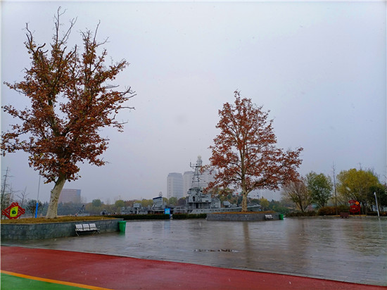 昨天剛過完小雪節(jié)氣,今天就下了一場雪。這場雪像是如期而至的約定,又似突如其來的驚喜,妝扮了整個城市。飛揚的雪花落到地上,草葉上,枝頭上,瞬間融化成晶瑩的水珠,滋潤著大地和萬物,形成了秋與冬交接的獨特景色。