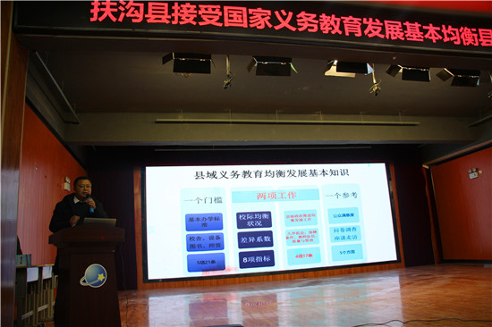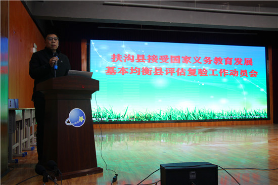 今年是河南省義務(wù)教育發(fā)展基本均衡縣評估的收官之年,扶溝縣將接受國家的抽查復(fù)驗(yàn)。為進(jìn)一步做好迎接國家義務(wù)教育發(fā)展基本均衡縣評估復(fù)驗(yàn)工作,11月25日上午,扶溝縣教體局召開了接受國家義務(wù)教育發(fā)展基本均衡縣評估復(fù)驗(yàn)工作動員會。教體局全體領(lǐng)導(dǎo)班子、股室負(fù)責(zé)人、包鄉(xiāng)人員,各鄉(xiāng)鎮(zhèn)(街道)中心校校長、普教專干、初中校長及迎驗(yàn)學(xué)校校長300余人參加會議。