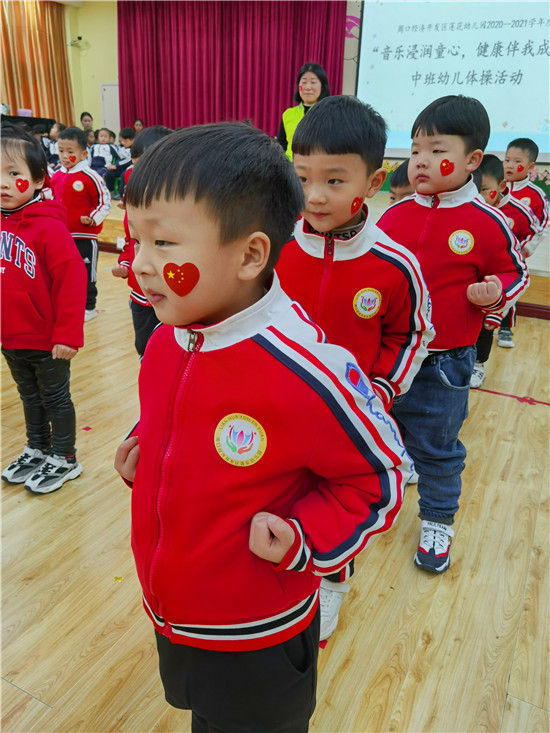 在熱情洋溢的音樂(lè)中,中班的運(yùn)動(dòng)健兒們,雄赳赳氣昂昂地入場(chǎng)了。瞧!他們個(gè)個(gè)精神抖擻,活力四射,整齊的步伐,響亮的口號(hào),無(wú)不體現(xiàn)蓮幼兒童的活潑、自信?!笆澜缯婷篮谩钡捏w操音樂(lè)響起,幼兒快樂(lè)地舞動(dòng)身體,時(shí)而裝作勇敢的海鷗,時(shí)而扮作講衛(wèi)生的小花貓,時(shí)而又成了互幫互助的企鵝?;铎`活現(xiàn)的動(dòng)物模仿操,迎來(lái)現(xiàn)場(chǎng)觀眾的熱烈掌聲。隨著一聲響亮的“嘿、哈”,幼兒扎馬步、出拳,一氣呵成。小小的身體,展現(xiàn)大大的能量。掌握中國(guó)功夫,鍛煉強(qiáng)健體魄,我們都是功夫?qū)殞殻∏?!大班幼兒在?dòng)感的音樂(lè)和老師的指揮中精神抖擻、踏著整齊的步伐入場(chǎng)了,他們靈活、有序地變換著各種隊(duì)形,像一個(gè)個(gè)快樂(lè)的小精靈。在歡快的音樂(lè)中,幼兒都十分投入,和著音樂(lè)的節(jié)奏,動(dòng)作協(xié)調(diào)、整齊有力,時(shí)而還發(fā)出“哼哈”的口令聲呢!他們開(kāi)心地跳著、笑著,跳出了快樂(lè)、跳出了自信、跳出了他們對(duì)運(yùn)動(dòng)的喜愛(ài),對(duì)健康的追求。