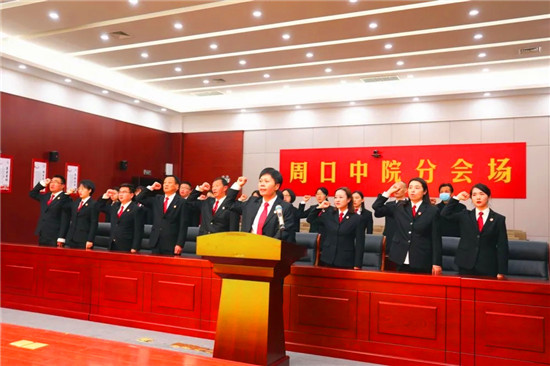 在第七個國家憲法日來臨之際,為深入學(xué)習(xí)宣傳習(xí)近平法治思想,大力弘揚(yáng)憲法精神,2020年12月3日,周口市中級人民法院組織干警向憲法莊嚴(yán)宣誓。