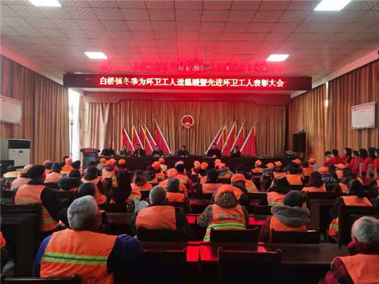 12月6日,白樓鎮(zhèn)召開冬季為環(huán)衛(wèi)工人送溫暖暨先進(jìn)環(huán)衛(wèi)工人表彰大會,114名環(huán)衛(wèi)工人收到暖心的棉衣。