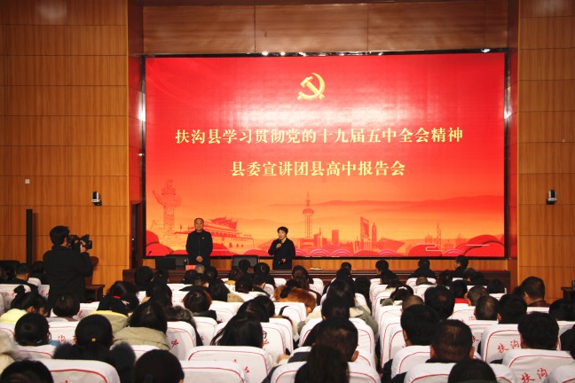 12月12日下午,扶溝縣高中德馨樓七樓會議室掌聲陣陣、座無虛席,扶溝縣學(xué)習(xí)貫徹黨的十九屆五中全會精神縣委宣講團(tuán)縣高中報告會正在這里舉行,宣講會特邀縣教體局黨組書記葛偉進(jìn)行宣講,局機(jī)關(guān)班子成員,縣高中班子成員和400余名教師參加了宣講會。