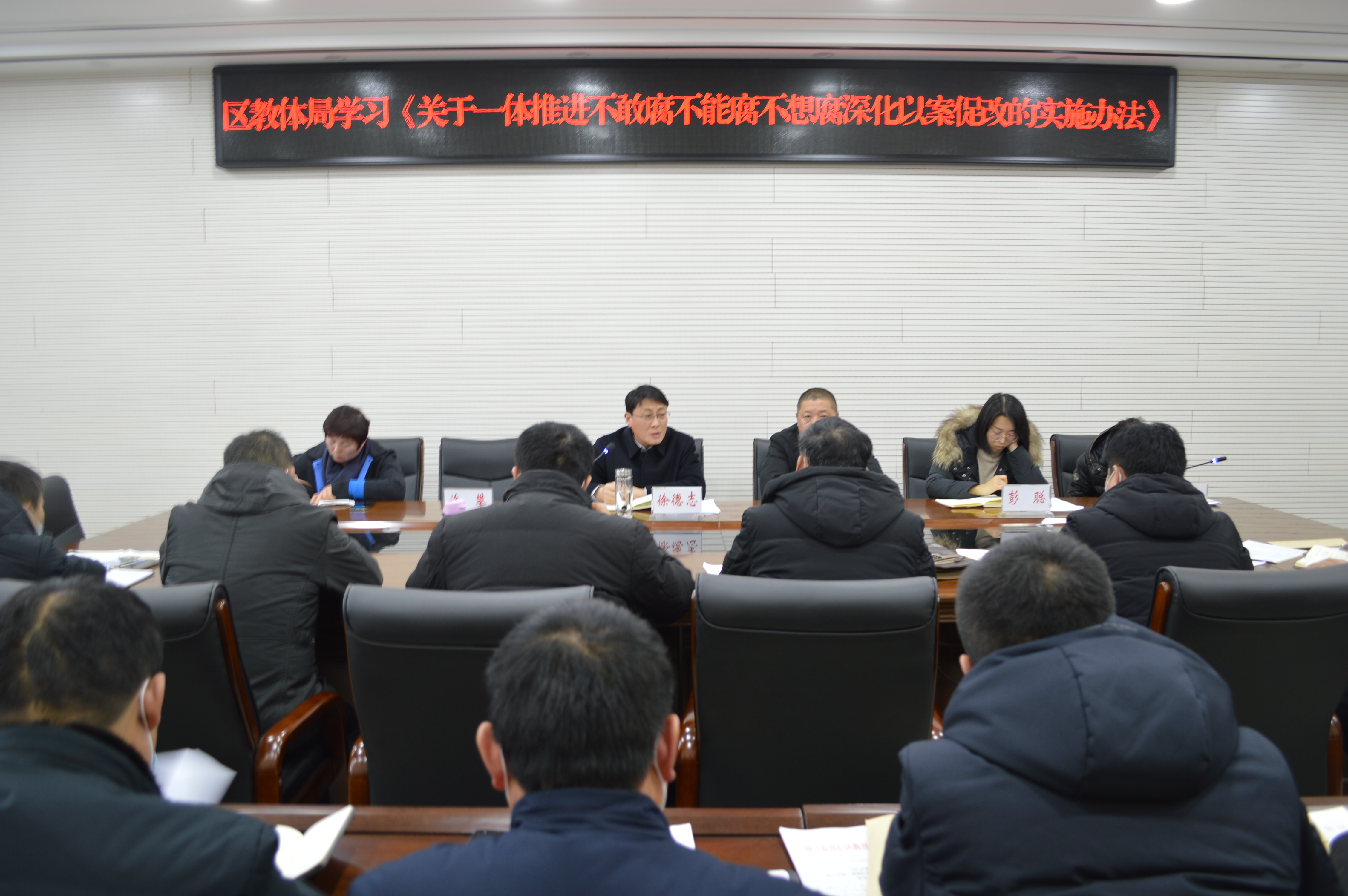 本報訊 (記者 劉華志 通訊員 朱德歌 文/圖)12月15日,川匯區(qū)教體局召開一體推進不敢腐不能腐不想腐深化以案促改工作會議,深入學習貫徹落實《關于一體推進不敢腐不能腐不想腐深化以案促改的實施辦法》,對下一步深化以案促改、全面從嚴治黨進行再動員、再部署。