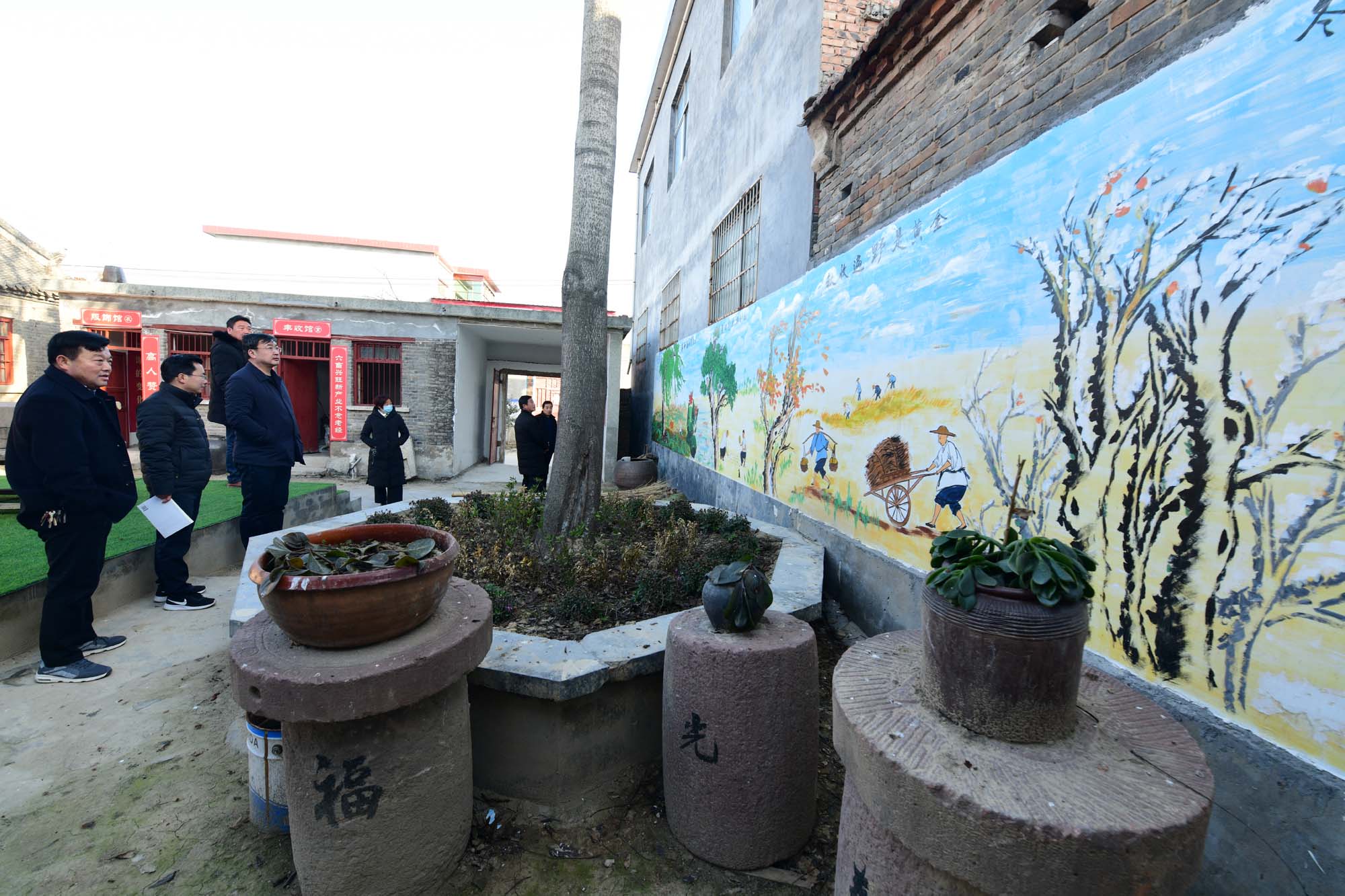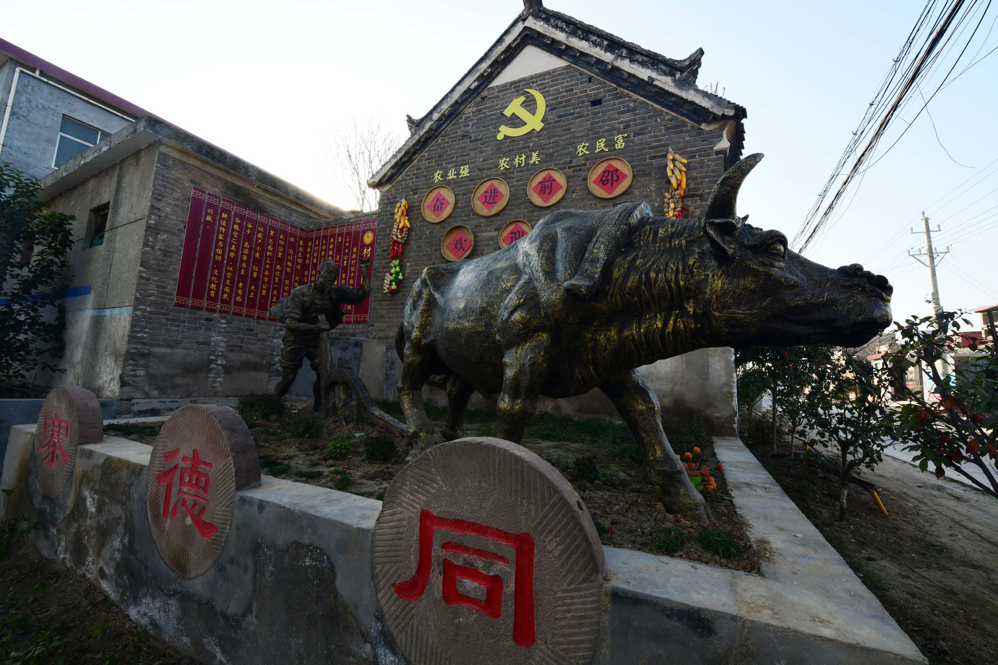 近日,西華縣奉母鎮(zhèn)前邵村建成的村史館吸引著村民前來參觀,村史館以村里一處上個世紀八十年代的老瓦房院落建成,村史館外塑有老農(nóng)扶犁驅(qū)牛耕作的雕像,院內(nèi)設(shè)置多個展室,展出了近50年來村里生產(chǎn)生活使用的用具,墻上繪著畫,院內(nèi)擺放著石磙等打場農(nóng)具等,村史館記錄著前邵村50年的發(fā)展史。該村黨支部書記邵俊偉說,近年村里通過發(fā)展,村民富了,又成立了合作社,村民入了股,每年還能分紅,村民的生活好,農(nóng)耕實現(xiàn)機械化,村民種地不累了。但是,生活再好,村民也忘不了村里的農(nóng)耕歷史和自己的根。