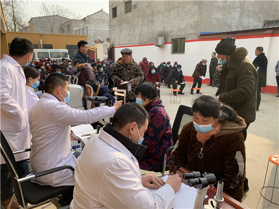 為民服務暖人心,送醫(yī)下鄉(xiāng)助健康。12月18日上午,淮陽區(qū)齊老鄉(xiāng)柳南行政村迎來一批特殊的客人。市眼科醫(yī)院醫(yī)療隊為村里的百位老年人進行體檢及眼疾檢查。同時,該村6名村醫(yī)與眼科醫(yī)院專家建立交流和跟班學習制度,以便更好為村民服務。