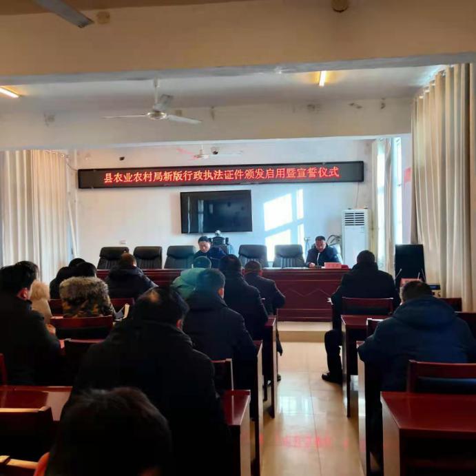 “我鄭重向祖國、向人民宣誓:忠于國家,忠于人民,忠于憲法和法律;堅(jiān)持執(zhí)法為民,堅(jiān)持依法行政,維護(hù)公平正義;以維護(hù)人民群眾利益、維護(hù)法律權(quán)威為已任,有法必依,違法必究,認(rèn)真履行法定職責(zé)?!?2月31日上午9時(shí),鹿邑縣農(nóng)業(yè)農(nóng)村局在三樓會議室召開新版農(nóng)業(yè)綜合行政執(zhí)法證件頒發(fā)啟用暨宣誓儀式大會。該局局長陳東振為51名執(zhí)法人員辦法了新版行政執(zhí)法證并提出具體要求。副局長丁文杰主持宣誓儀式大會并領(lǐng)誓。