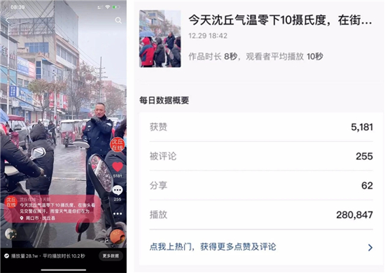 幾天來,一段關(guān)于沈丘交警的抖音徹底火了!一名學(xué)生家長(zhǎng)把這段視頻上傳到了抖音,沒想到,短短幾天時(shí)間,該視頻播放量近三十萬……