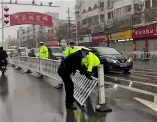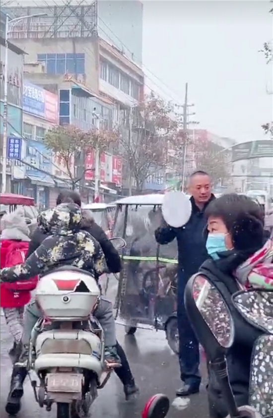 走在路上,雪花片子就往臉上撲,迎面的小風(fēng)像刀子一樣,即使你不愿意,也要跟你進(jìn)行親密接觸。到沈丘縣回民小學(xué)東邊的十字路口,各路送娃大軍從四面八方涌來,那真是車來車往,熙熙攘攘。兩輪的三輪的四輪的,瞬間一起往學(xué)校門口涌去。原本送完娃多少都會(huì)堵一會(huì),今天竟然沒有堵車!后來才知道學(xué)校這邊有個(gè)警察很早就來現(xiàn)場(chǎng)指揮交通。