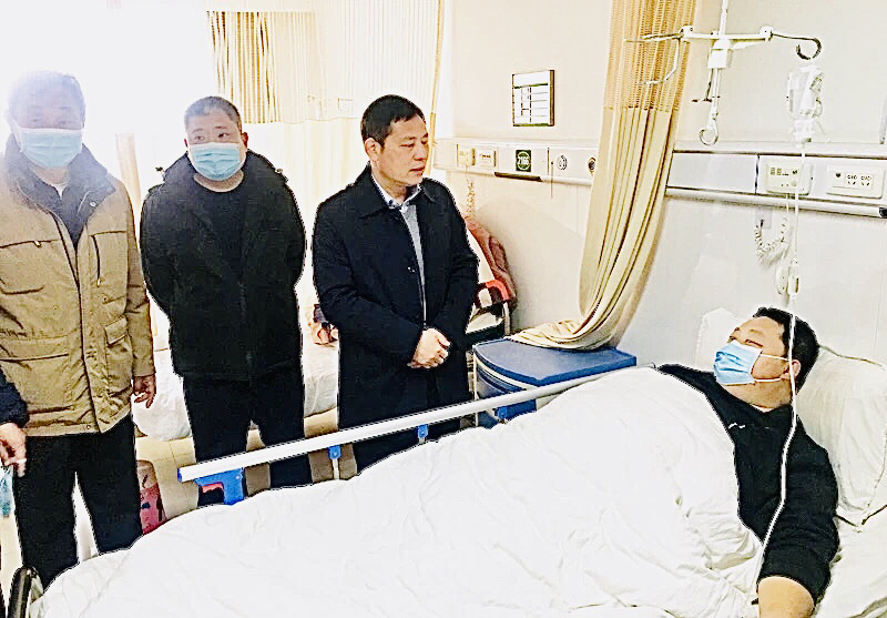 在醫(yī)院病房,陳鳳祥詳細(xì)了解朱樂樂的病情和治療情況,詢問其家庭情況和生活狀況,表達(dá)了公安局黨委非常重視民警、輔警身體健康情況的心情,并送上慰問金。同時(shí),叮囑朱樂樂要保持樂觀心態(tài),安心養(yǎng)病,爭取早日康復(fù),回到工作隊(duì)伍。