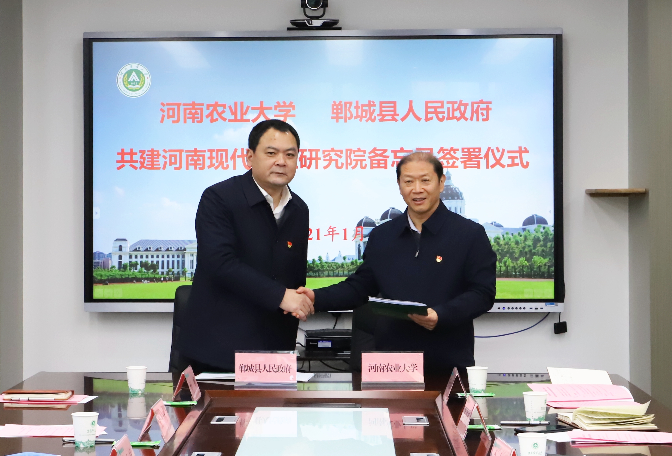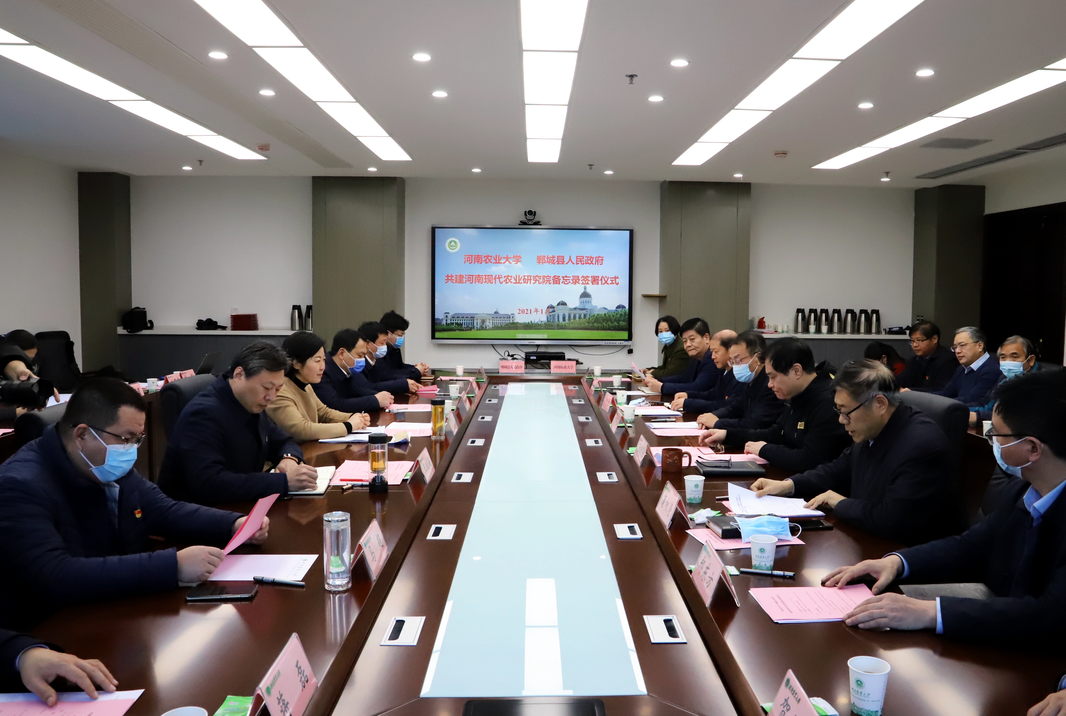 1月8日,鄲城縣人民政府、河南農(nóng)業(yè)大學共建河南現(xiàn)代農(nóng)業(yè)研究院備忘錄簽署儀式在河南農(nóng)業(yè)大學龍子湖校區(qū)舉行。河南農(nóng)業(yè)大學黨委書記魏蒙關(guān),中國工程院院士、校長張改平,校黨委副書記、副校長介曉磊,周口市人大常委會副主任、鄲城縣委書記羅文閣,縣領(lǐng)導李全林、王獻超、王偉、馬超、劉輝、蔣磊等參加簽約儀式。河南農(nóng)業(yè)大學副校長康相濤主持簽約儀式。