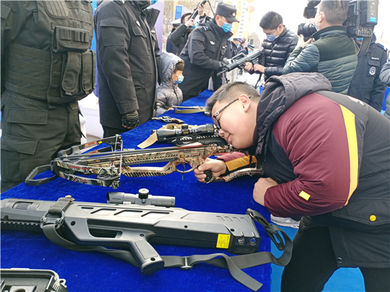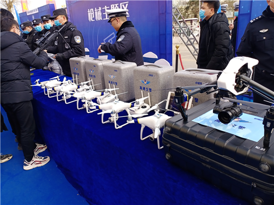 活動(dòng)現(xiàn)場(chǎng)設(shè)置了“反假幣主題區(qū)”“消防主題區(qū)”“防電詐主題區(qū)”“禁毒主題區(qū)”“互動(dòng)區(qū)”等形式多樣的功能展示區(qū),現(xiàn)場(chǎng)接受群眾咨詢(xún),與市民深度互動(dòng),讓市民近距離體驗(yàn)、全面感受人民警察的日常工作。除此之外,民警還進(jìn)行了槍械展示、無(wú)人機(jī)展示等內(nèi)容。