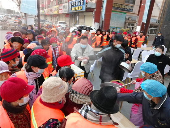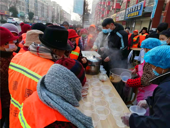 “小孩小孩你別饞,過(guò)了臘八就是年。”臘八節(jié)一大早,沈丘縣一小區(qū)門前熬制的臘八粥香味撲鼻,一碗碗熱氣騰騰的粥免費(fèi)送給附近的居民、環(huán)衛(wèi)工人、公安民警和快遞小哥品嘗,大家一起共話臘八情。
