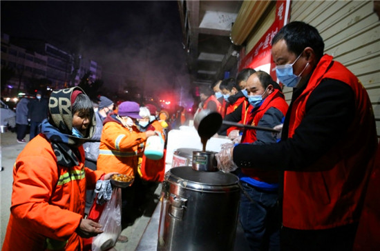 田雨表示,為了能讓大家喝上熱氣騰騰的臘八粥,志愿者凌晨四點(diǎn)便開(kāi)始忙碌,把剛熬好的臘八粥裝碗并做好保溫措施運(yùn)到活動(dòng)現(xiàn)場(chǎng),再一碗碗地送到戶外勞動(dòng)者面前??粗h(huán)衛(wèi)工人、出租車司機(jī)、孤寡老人等喝著一碗碗熱騰騰的暖心臘八粥,還有他們臉上綻放的笑容,志愿者感到很欣慰,紛紛表示這一早上的冷和累都是值得的。 一碗愛(ài)心粥,溫暖了無(wú)數(shù)人,也喚醒了人與人之間的關(guān)愛(ài)、增強(qiáng)了人與人之間的信任。項(xiàng)城市總工會(huì)職工志愿者以實(shí)際行動(dòng)傳遞著溫暖、傳播著善舉、弘揚(yáng)了正能量!