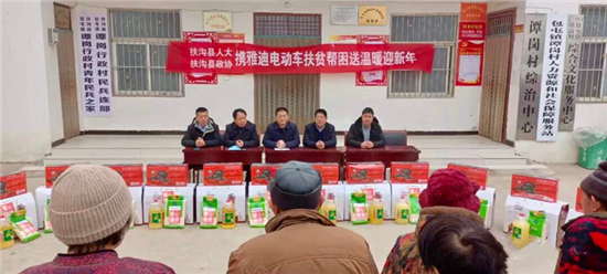 1月25日,扶溝縣人大常委會(huì)機(jī)關(guān)聯(lián)合愛(ài)心企業(yè),到扶溝縣包屯鎮(zhèn)譚崗行政村舉行愛(ài)心扶貧捐贈(zèng)活動(dòng)。