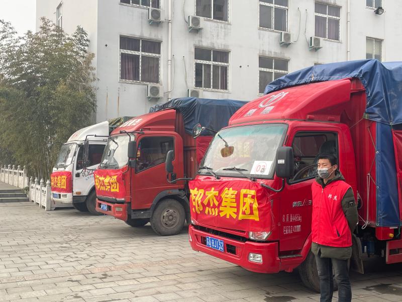 據(jù)工作人員介紹,本次馳援河北石家莊,河南邦杰集團(tuán)、湖北周口商會(huì)、湖北許平漯商會(huì)、新欣福珍集團(tuán)共組織募捐了近1萬(wàn)斤優(yōu)質(zhì)東北大米、1000箱方便面、 500箱鴨蛋、10萬(wàn)只口罩、近1萬(wàn)件邦杰牛肉腸等近百萬(wàn)元生活急需的食品和防疫物資?!榜Y援石家莊抗疫物資車隊(duì),出發(fā)!”隨著一聲令下,7輛裝滿物資的專車啟動(dòng),送往石家莊市最急需的地方。