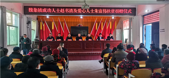 1月29日,天氣乍暖還寒,魏集鎮(zhèn)政府人頭攢動,喜氣洋洋,一片熱鬧的景象。內(nèi)蒙古希拉穆仁旅游置業(yè)開發(fā)有限公司董事長、內(nèi)蒙古楊子照明鋼桿制造有限責(zé)任公司董事長、內(nèi)蒙古周口商會會長趙書清和愛心人士朱富偉一行,帶著整整兩卡車米、面、油共計八萬元生活物資,回到家鄉(xiāng)魏集鎮(zhèn)開展扶貧濟(jì)困活動,在嚴(yán)寒的冬日給魏集鎮(zhèn)困難群眾帶來了溫暖和祝福??h政協(xié)主席孫培忠,縣委常委、宣傳部長李本磊出席活動。魏集鎮(zhèn)黨委書記衛(wèi)春忙,鎮(zhèn)長劉艷光參加活動。