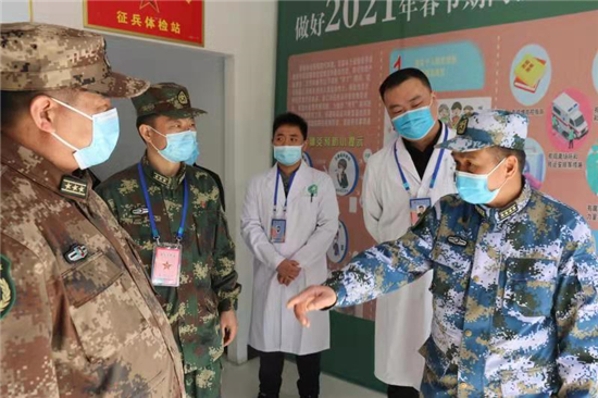 湯維政走進(jìn)內(nèi)科、外科、五官科、心電圖、心理測試等檢查科室,實(shí)地查看體檢站基礎(chǔ)設(shè)施、體檢流程、人員配備、疫情防控、后勤保障等情況。他看到體檢場所按照流程合理、尊重隱私、閉環(huán)管理的要求,結(jié)合疫情防控的需求優(yōu)化診室設(shè)置,醫(yī)務(wù)人員嚴(yán)格把控體檢項(xiàng)目的各個關(guān)口,給予了肯定和贊揚(yáng)。湯維政與現(xiàn)場候檢的應(yīng)征青年親切交談,了解他們的年齡、學(xué)歷、家庭等情況,對適齡青年、大學(xué)畢業(yè)生踴躍參軍、報(bào)效祖國的行為表示贊賞,勉勵他們積極接受祖國挑選,投身軍營建功立業(yè)。